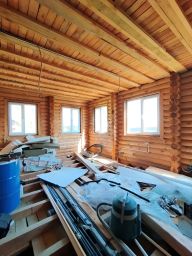 Дом из оцилиндрованного бревна 2010 года постройки, двухэтажный, под отделку.