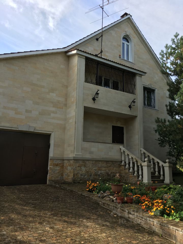 Площадь 344 кв.м. 4-уровневый (1 этаж - прихожая, кухня-столовая, гостиная с бильярдом и камином, с/у, 2 этаж - холл, 3 спальни, с/у, спортивный зал со столом для настольного тенниса и игры в дартс, мансардный этаж - оборудована гостевая спальня и хозяйственные помещения, цокольный этаж - сауна, бассейн, душ, комната отдыха, постирочная, хозяйственные помещения). В крыле имеется теплый гараж. Коттедж полностью меблирован, паркетные полы в жилых комнатах, вся бытовая техника, готов к проживанию. Фундамент - ж/б блоки, межэтажные перекрытия - ж/б плиты, стены из кирпича, облицован плиткой из натурального песчаника и декорирован элементами из натурального известняка и гранита. Богатая входная группа. Крыша из натуральной черепицы. Коттедж выглядит очень стильно.
