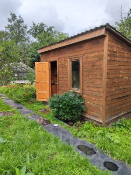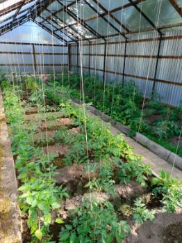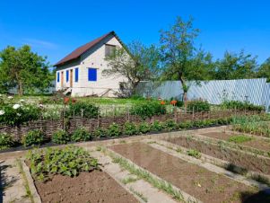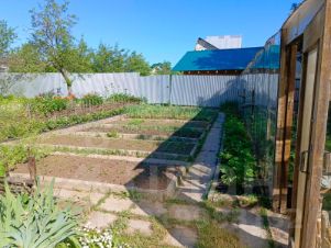 На участке обустроена огородная зона, имеется капитальная остекленная теплица на фундаменте, посажены цветы и плодово-ягодные деревья.