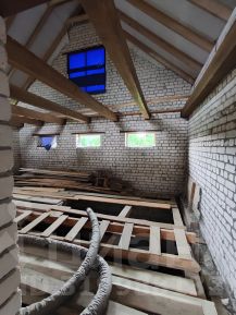 Дом под чистовую отделку, разводка электричества произведена, необходимо произвести разводку водопровода, отопления, утеплить чердачное перекрытие, оштукатурить потолки, сделать стяжку пола, установить двери.