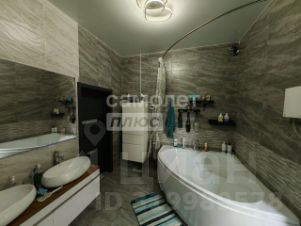 Ванная комната с современной сантехникой и душевой кабиной и ванной с гидромассажем
