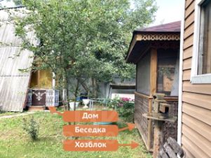 На территории грамотно расположены: дом, бытовка ~ 5 м², летний туалет и душ, беседка 9 м², хозблок с летней кухней и душевой, зона для отдыха.