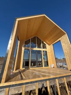 Внутреннее пространство дома включает две уютные спальни, кабинет, просторную кухню-гостиную и современный санузел. Панорамные окна наполняют комнаты светом, а высокие потолки (до 3,5 м) создают ощущение простора и свободы.