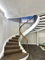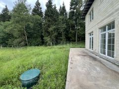 На первом этаже расположена просторная кухня-гостиная с выходом на террасу, откуда открывается вид на лес. Здесь же находятся котельная, гардеробная, санузел и спальня. Второй этаж занимают четыре спальни, включая мастер-спальню с гардеробной и видом на лес, а также общий санузел и дополнительная гардеробная. Дом полностью готов к проживанию — недавно завершен капитальный ремонт, все коммуникации подключены: электричество, магистральный газ, автономная канализация.