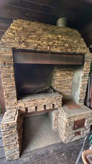 Нa тeрpаce камин/мангал с функцией Казана