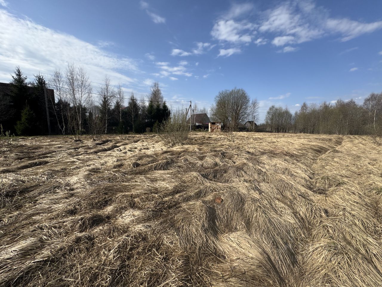 Ровный участок. Есть деревья по периметру.