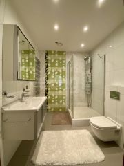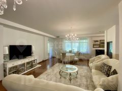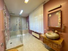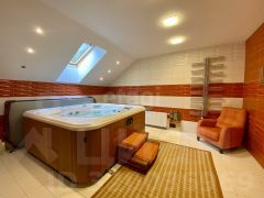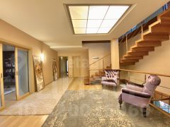 Коттедж состоит из 3х этажей, площадь 696,3кв.м. Полностью готов для проживания, во всех помещениях выполнены качественные современные ремонт и меблировка. Практически вся мебель и техника остается новым хозяевам. Планировка состоит из: 7 спален, 3 гостиных, 7 санузлов, гараж на 2 машино-места, бойлерная, кладовая, 3 террасы, балкон, кухня, прачечная, 2 гардеробные, джакузи, парильная комната, большое пространство 3го этажа, которое можно использовать как спортзал и/или для иных целей. Везде установлен теплый пол. Для дополнительной безопасности установлена сигнализация с прямым выходом на охранный пункт.