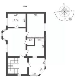 Первый этаж: кухня, две спальни, санузел с душевой, гардеробная, холл с коммуникациями