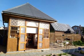 На участке стоит новая функционирующая Баня, беседка с высоким потолком и иллюминацией (продаётся частично мебель, по желанию), мангальная зона, гараж на две машины, везде проведен свет, подготовлен высокий фундамент для строительства двух-трёх этажного дома, два сарая один из которых металлический, берёзовые дрова и пиломатериал (3 куба)