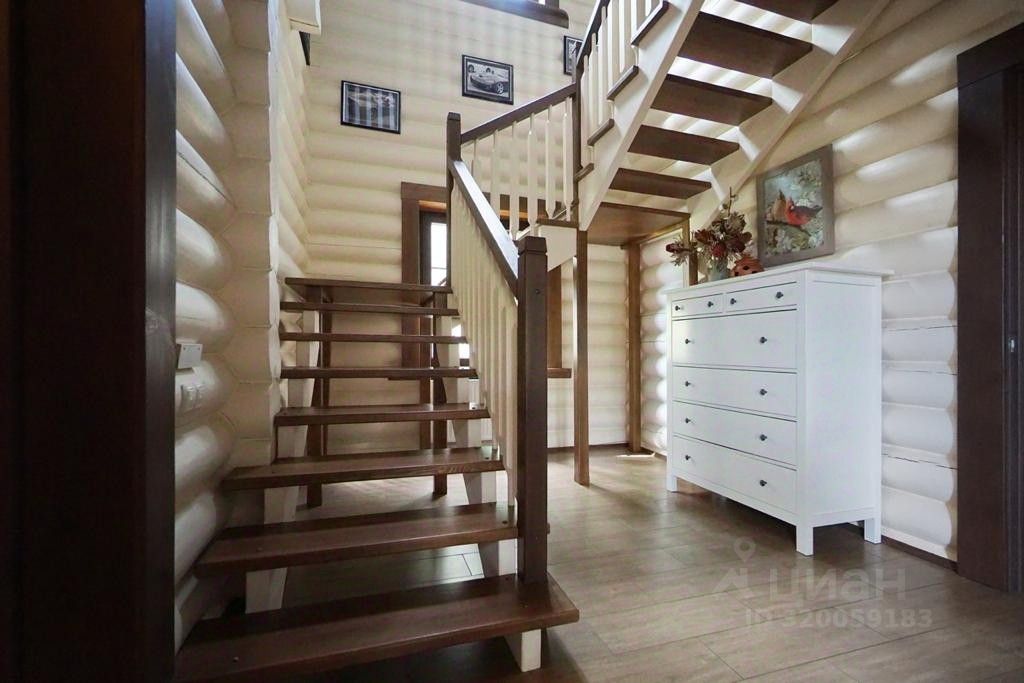 Дом 156,7 кв.м + 24 кв. м. веранда. Дом построен из оцилиндрованного бревна диаметром 22 см, северный зимний лес из Кировской области, фундамент ленточный, залит бетонной плитой. В отдельностоящей котельной заведен магистральный газ. В доме есть система охранной сигнализации с тревожной кнопкой, кондиционеры, теплый пол. Планировка дома: первый этаж — прихожая, подсобное помещение, с/у с ванной, спальня, большая зона гостиной, объединённая с кухней, с большими панорамными окнами и зоной второго света, терраса. Кухня полностью оборудована: холодильник, встроенные духовой шкаф, газовая плита, посудомоечная машина, СВЧ. На втором этаже три спальни и с/у с душевой кабиной.