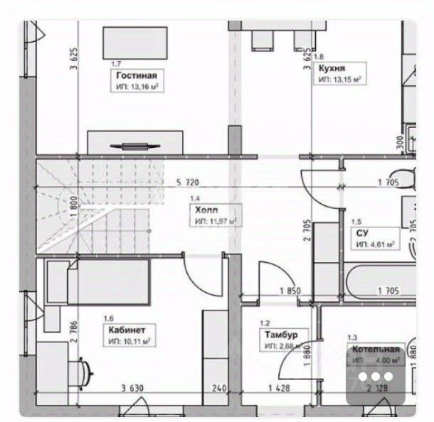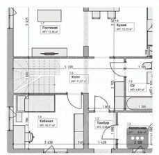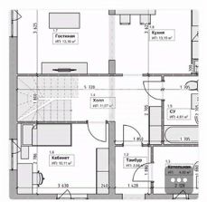 1 этаж: холл, просторная кухня-гостиная, 1 жилая комната, с/у, бойлерная.
