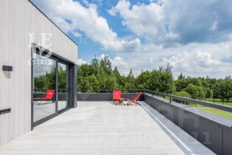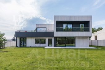 Дом построен в стиле современного минимализма. В отделке фасада использованы планкены из лиственницы, установлена архитектурная подсветка. Конструктив дома монолитный каркас, фундамент утепленная шведская плита, кровля - плоская. На первом этаже дома - водяной теплый пол. Две террасы с видами на лес общей площадью 66 кв. м представляют собой удобные места отдыха. Изюминкой дома являются раздвижные оконные порталы в гостиной и на кухне, а также стеклянные эркеры (Oriel) в гостевых спальнях. Котельная полностью оснащена: установлены газовый и электрический (резервный) котлы, датчики протечки воды. Смонтирована система "умный дом". Для автомобиля построен навес, примыкающий к дому.