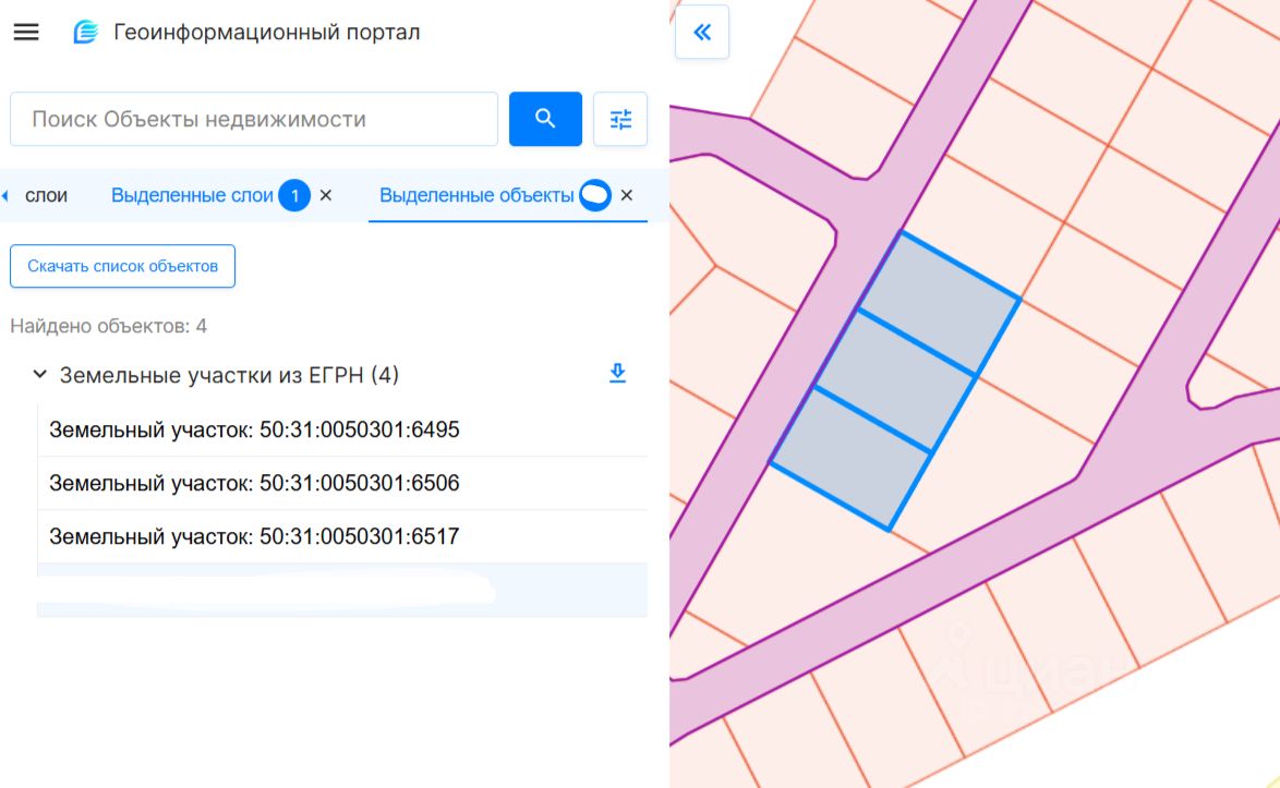 кадастровые номера 50:31:0050301:6495, :6506 и :6517,