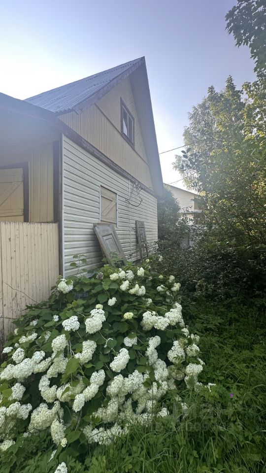 На участке 2-х этажная дача, построена из дерева на ленточном фундаменте. Снаружи дача обшита вагонкой и покрашена, внутри обшита частично вагонкой и фанерой (OSB).