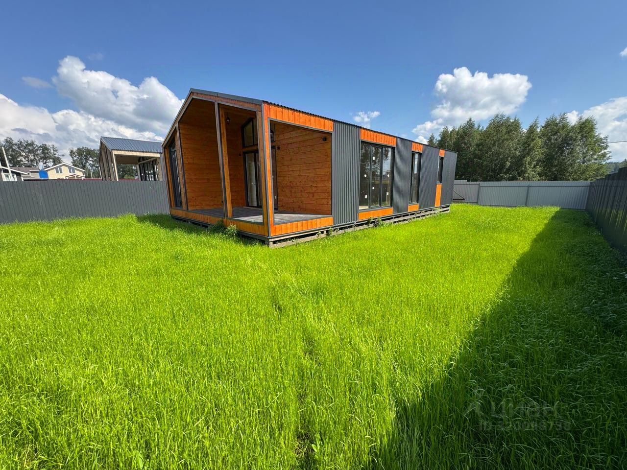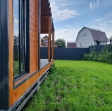 Уютный, всесезонный и тёплый дом 100 м2 с панорамным остеклением, построенный по каркасной технологии.
