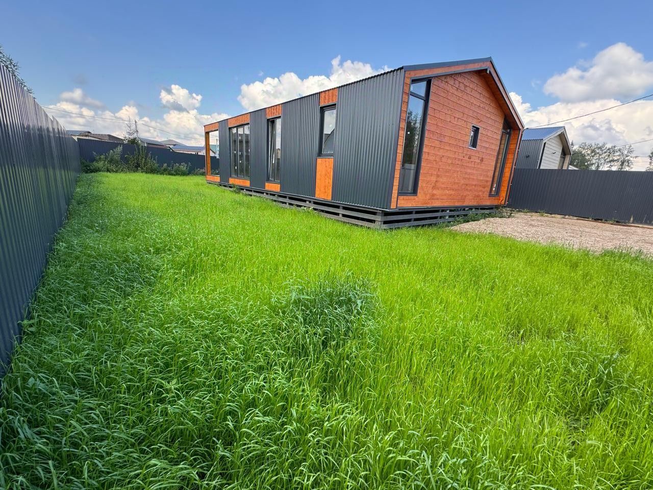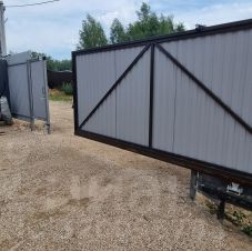 Участок ровный, огорожен от соседей и оборудован откатными воротами.