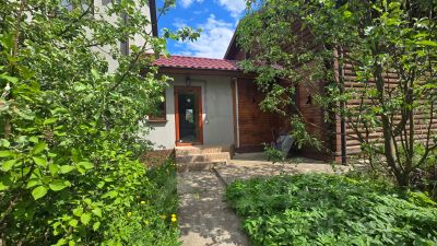 На участке сад с плодовыми деревьями и кустарниками, две теплицы, хозблок из кирпича.