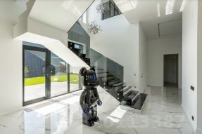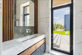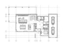 1 этаж: холл, кухня-гостиная-столовая с выходом во внутренний дворик (150 м²), гостевая спальня, санузел, гардеробная, постирочная, котельная.
