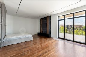Отделка выполнена из премиальных материалов (ореховый паркет, итальянские двери). На кухне встроенная бытовая техника Miele, в санузлах — сантехника Villeroy&Boch.