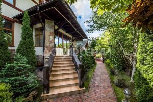 На участке выполнен ландшафтный дизайн: многоконтурный дренаж, прогулочные дорожки вымощены из натурального камня, высажены взрослые лесные и декоративные деревья, кустарники, установлена система автополива, смонтировано освещение с автоматическим включением по датчику освещенности. На доме установлена новогодняя иллюминация.