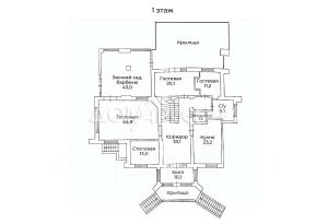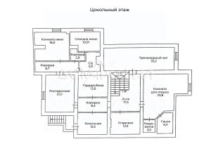 Цокольный этаж: сауна, джакузи, комната отдыха, тренажерный зал, двухкомнатная квартира для персонала, техпомещение бассейна, техпомещение аквариума, постирочная, топочная