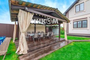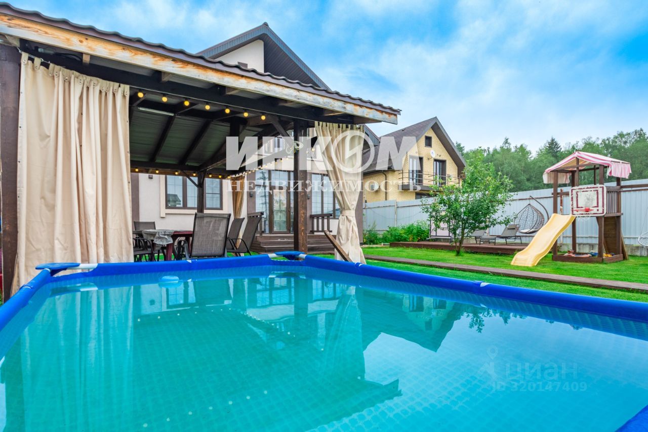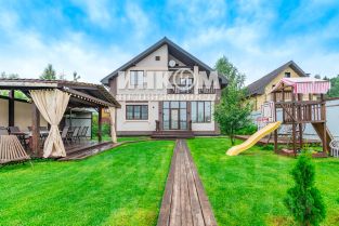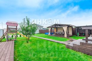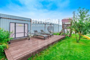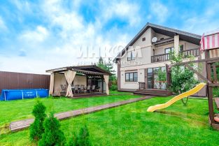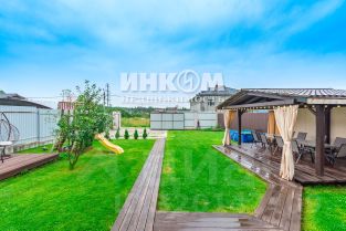 Дом находится на ровном участке правильной формы. На участке выполнено благоустройство с газоном. Участок зонирован по функционалу: зона барбекю, детская площадка и зона летнего бассейна. По периметру сплошной забор. На въезде парковка для автомобилей.