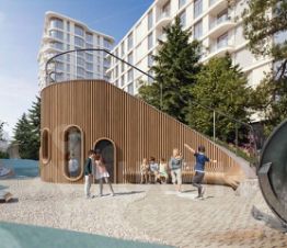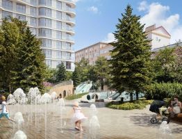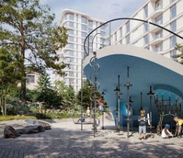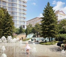 • Большой двор-парк (1,4 га) с фонтаном, ручьём, детской площадкой и зонами отдыха — идеальное место для прогулок и отдыха всей семьёй.
