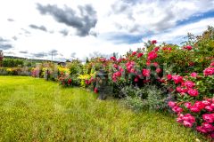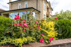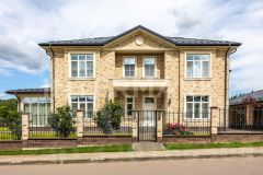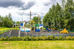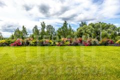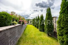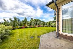Коттедж стоит на участке площадью 10.5 соток с зеленым газоном и красивым ландшафтным дизайном. На территории имеется хозяйственная постройка для хранения дачных принадлежностей и инструментов.
