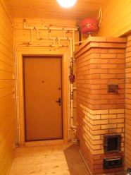 Кирпичная печь-камин. Нагревает котел, батареи в каждой комнате.