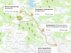 - В шаговой доступности развитая сеть фермерских и сетевых магазинов, а также рыболовное хозяйство и конноспортивный центр, Новоиерусалимский монастырь и музейный комплекс Новый Иерусалим.