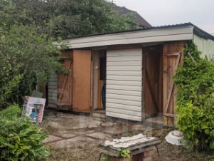 Напротив дома стоит хозяйственная постройка из 4х секций: туалет, сарай-мастерская, душ, мойка.