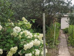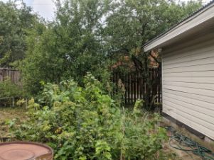 Участок освоен: плодоносящие кусты (смородина, крыжовник, айва, черноплодная рябина, ежевика), лимонник, слива, груши, яблони, сирень, жасмин гортензии, цветы.
