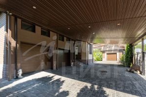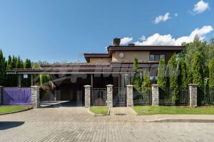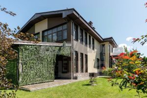 В доме два этажа + чердак(высота потолка чердака в "коньке" -1,7 м ), теплый гараж на две машины с тех.помещениями, котельная, под навесом расположена летняя терраса с уличной кухней(подведена холодная и горячая вода) и зоной барбекю. Построен из кирпича, облицован фиброцементными панелями фирмы KMEW (Япония), фундамент - монолитная плита. Отделка внутренних стен: обои, лиственница (в спальнях на 2-м этаже), плитка (в санузлах); полы- плитка и массив дерева, подогрев пола в зоне плитки на 1-м этаже; двери Union (шпон дерева); Отопление  радиаторы Arbonia (Германия), радиаторы-конвекторы в полу, где панорамные окна в кухне-гостиной и в подоконнике (столешница кухни); кондиционеры. В котельной расположены накопительный бак 400л Buderus, система очистки воды (США), газовый котел 73 КВт Buderus Logano. Все оборудование на обслуживании.