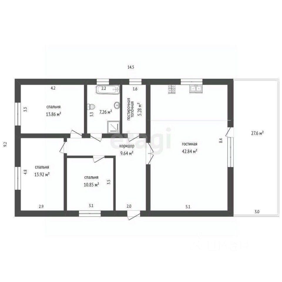 1 этажный дом площадью 115 м2 с отделкой (на фото всё есть).