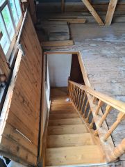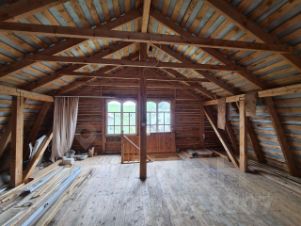 Третий этаж - не обшитая высокая, широкая в размер дома мансарда. Можно обшить утеплить. Двускатная крыша металлочерепица. Потолки во всём доме 3 метра.