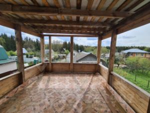 Второй этаж - комната + балкон + крытая терраса. Перекрытие дерево брус, потолки вагонка утепление кам/вата.