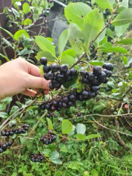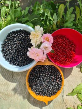 На участке растут - вишни, яблони, жимолость, голубика, крыжовник и смородина.
