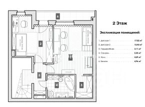 2 этаж: 2 детские, балкон, санузел с ванной, гардеробная