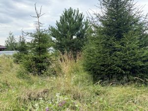 В деревне есть ГАЗ, проходит по границе участка. Электричество подведено к участку, есть скважина. На участке есть временная постройка, можно использовать как дачный домик. Соседи живут круглый год, в основном семейные пары.
