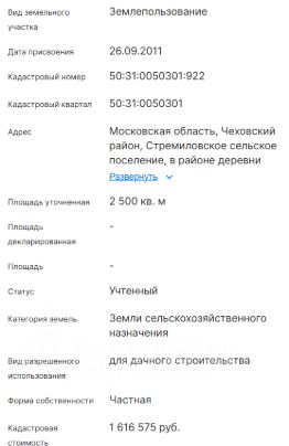 Категория земли: земли сельскохозяйственного назначения, с разрешенным использованием для дачного строительства, что позволяет возвести жилой дом для круглогодичного проживания.