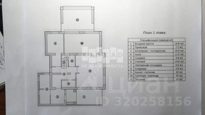 На первом этаже прихожая, котельная - постирочная с дополнительным входом, холл, санузел, спальня (кабинет) , кладовая, кухня-гостиная, гостиная-веранда с выходом на террасу.