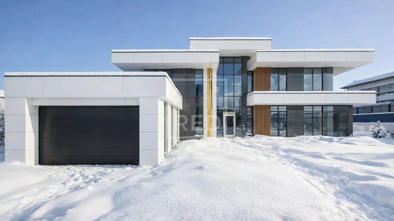 В продаже 2-этажный загородный дом в современном стиле "Хай-тек" общей площадью 850 кв.м с учетом террасы, расположен на участке 21 сотки в элитном коттеджном поселке Agalarov Estate.
