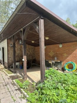 На участке парковочное место на две машины, мангальная зона, большой хоз блок, в котором можно сделать гостевой дом, маленький хоз блок и беседка.