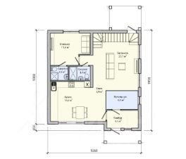 Наружные стены коттеджа из трехслойных железобетонных панелей БЭНПАН Премиум толщиной 270 мм и БЭНПАН+ с встроенной теплоизоляцией. Внутренние перегородки - БЭНПАН 100 мм. Высота стен 3,05 метра. Внешняя отделка фасада покраска и штукатурка.