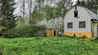Продаю уютный двухэтажный жилой дом из бруса 134 кв.м на участке 9,8 соток, окружённых елями и соснами, в шаговой доступности от ж/д станции "Орудьево" (15-20 минут пешком). Дом построен в 1994 году, на высоком блочном фундаменте. Планировка дома представлена на фото. Дом, кухня и сауна с санузлом соединены просторной закрытой террасой. На 2 этаже есть большая спальня, балкон и помещения для хранения, на 1 этаже гостиная с камином, библиотека и две спальни. Вся мебель и техника (в том числе садовая) остаются будущим владельцам. Вода проведена на кухню (проточный водонагреватель), в сауну и на террасу. с мая по октябрь используется центральный водопровод, для остального времени есть скважина. В сауне, кроме парилки, есть комната отдыха, душ (бойлер на 60 л), санузел. В санузле стиральная машина. Электричество 15 кВт, 3 фазы. В цокольном этаже дома размещаются котельная и гараж.Участок граничит с другими лишь с двух сторон, освоен с 1978 года. Сейчас на нём плодовые деревья (яблони, вишни) и кустарники (смородина, крыжовник, черноплодная рябина), а также цветы. В СНТ благоустроены дороги, есть детская и спортивная площадки, пруд с утками, водоём для купания. Есть магазины, продовольственные и строительный, рынок. Прекрасные соседи. Дом оформлен как жилой. Возможна прописка.