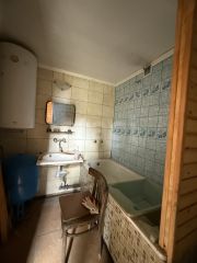 Цокольный этаж с отдельным входом, он оборудован под мастерскую и там же располагается санузел с ванной, что делает пространство функциональным и удобным для работы или хобби.