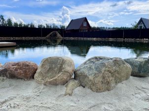 На территории поселка расположен собственный пляж с прудом с насыпным белым песком, спортивной и детской площадками. Сам поселок располагается у потрясающе красивой реки с оборудованной зоной отдыха с белым песком и детской площадкой.
