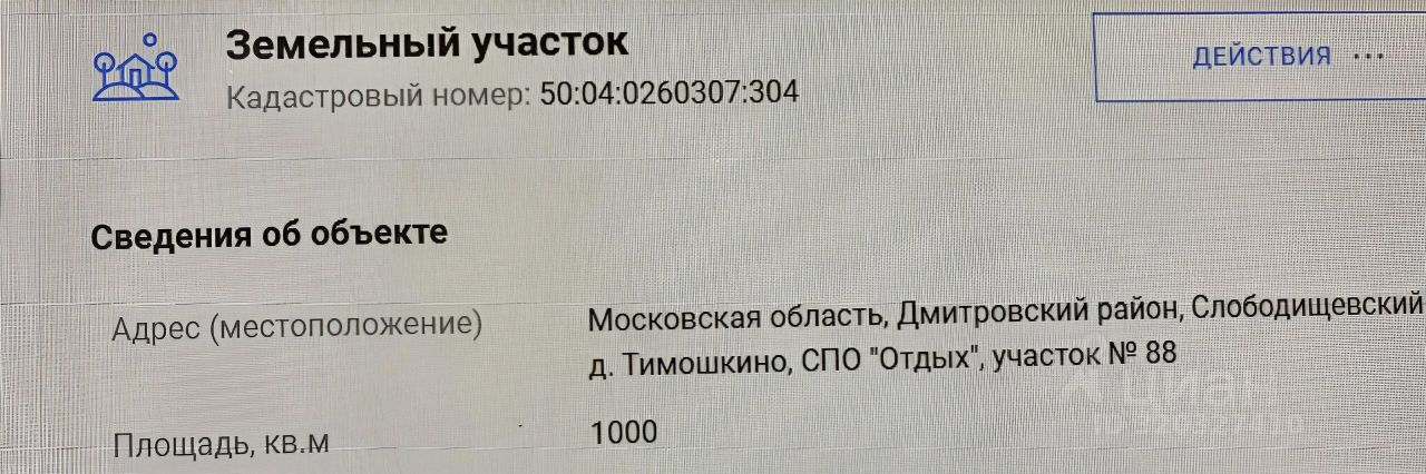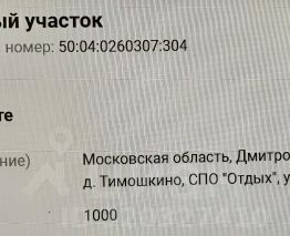 Участок. МО Дмитровский р-он, д. Тимошкино, СПО Отдых, земля сельхозназначения. Кадастровый номер 50:04:0260307:304. Участок 10 соток, прямоугольной формы #88, напрямую от собственника.