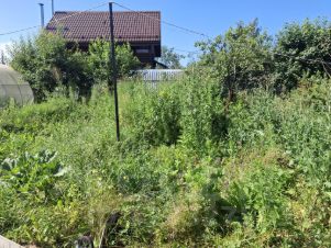 Соседи с трех сторон. Забор с двух сторон сетка рабица, внешняя сторона и одна боковая часть профнастил. В части забора, который выходит на улицу Шоссейную, есть калитка и распашные ворота для вьезда машины.
