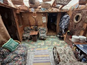 Туалет:пока биотуалет. осталось установить унитаз, подвести трубу для холодной воды (слив для бачка) и нарастить трубу (около 1 м) для канализации.